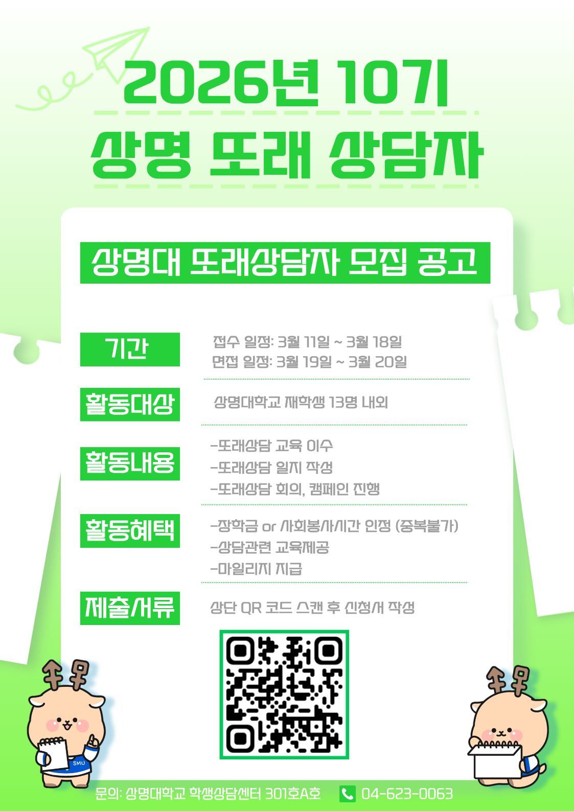 [학생상담센터] 2026학년도 10기 상명 또래상담자 모집