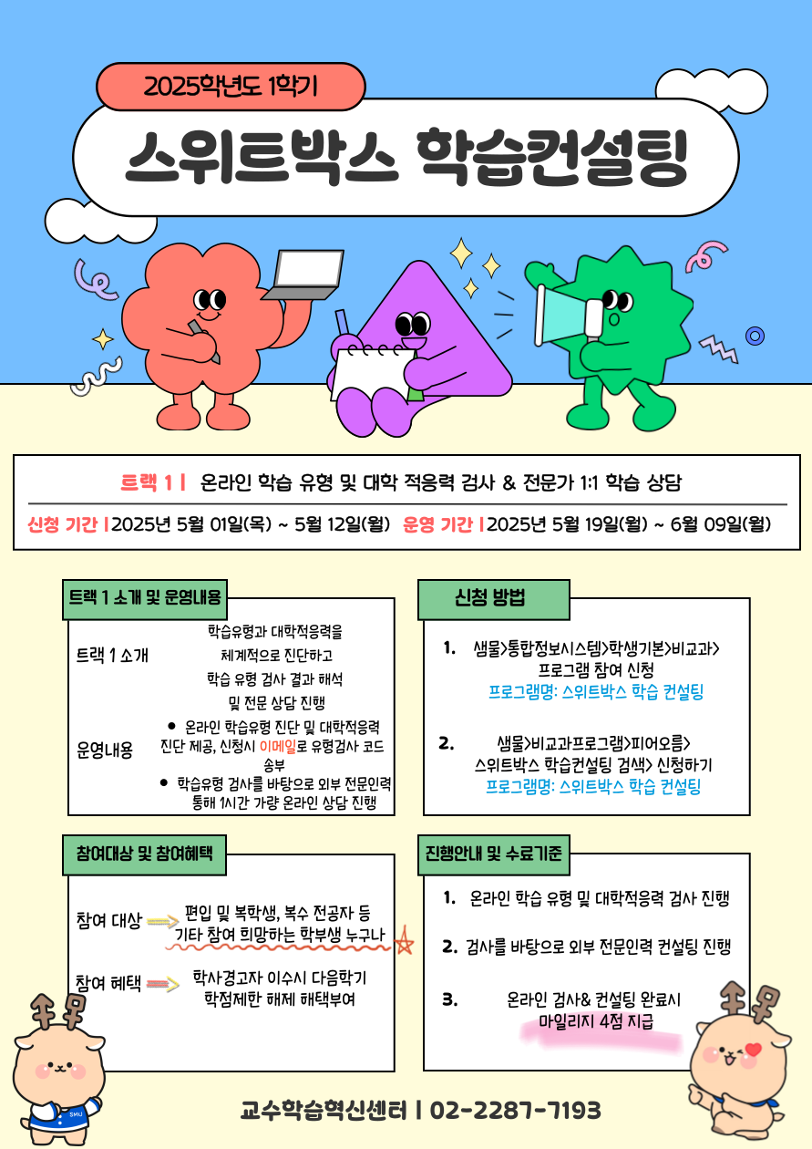 서울 [비교과] [교수학습혁신센터지원팀(서울)]2025학년도 1학기 스위트박스 학습컨설팅 모집 안내_트랙1 -